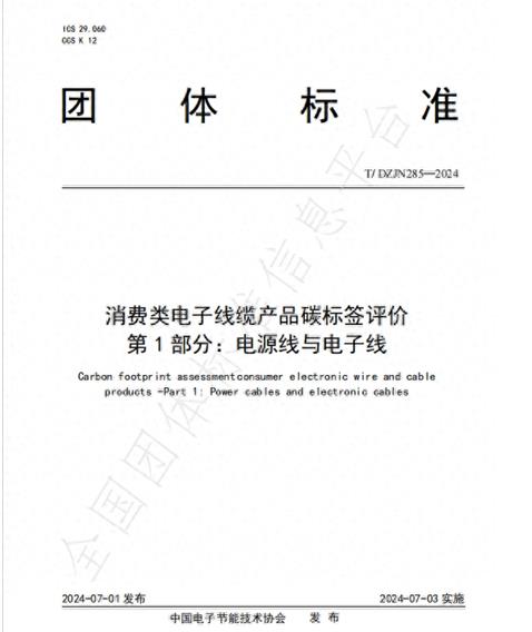 為了推動消費類電子線纜產品行業的綠色發展,推動電子電器行業產品碳足跡管理體系的建設。2024年7月1日,中國電子節能技術協會審核通過了《消費類電子線纜產品碳標簽評價 第1部分:電源線與電子線》(T/DZJN285—2024)團體標準,本標準由中國電子節能技術協會低碳經濟專業委員會及廣東聯升傳導技術有限公司牽頭編制,自2024年7月3日起正式實施。
