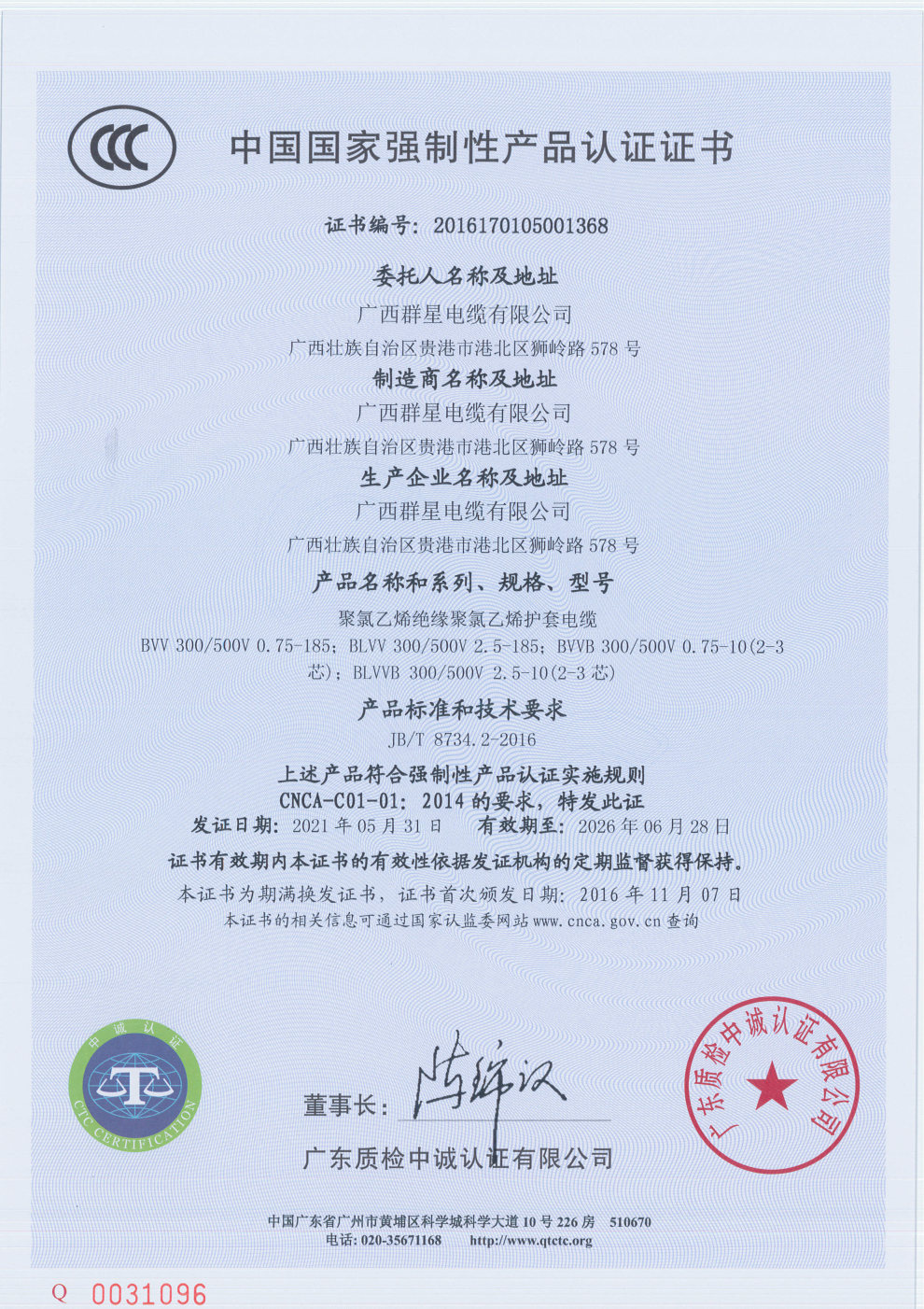 首頁 > 關于我們 >質量認證 >聚氯乙烯絕緣聚氯乙烯護套電纜3C認證BVV BLVV BVVB BLVVB